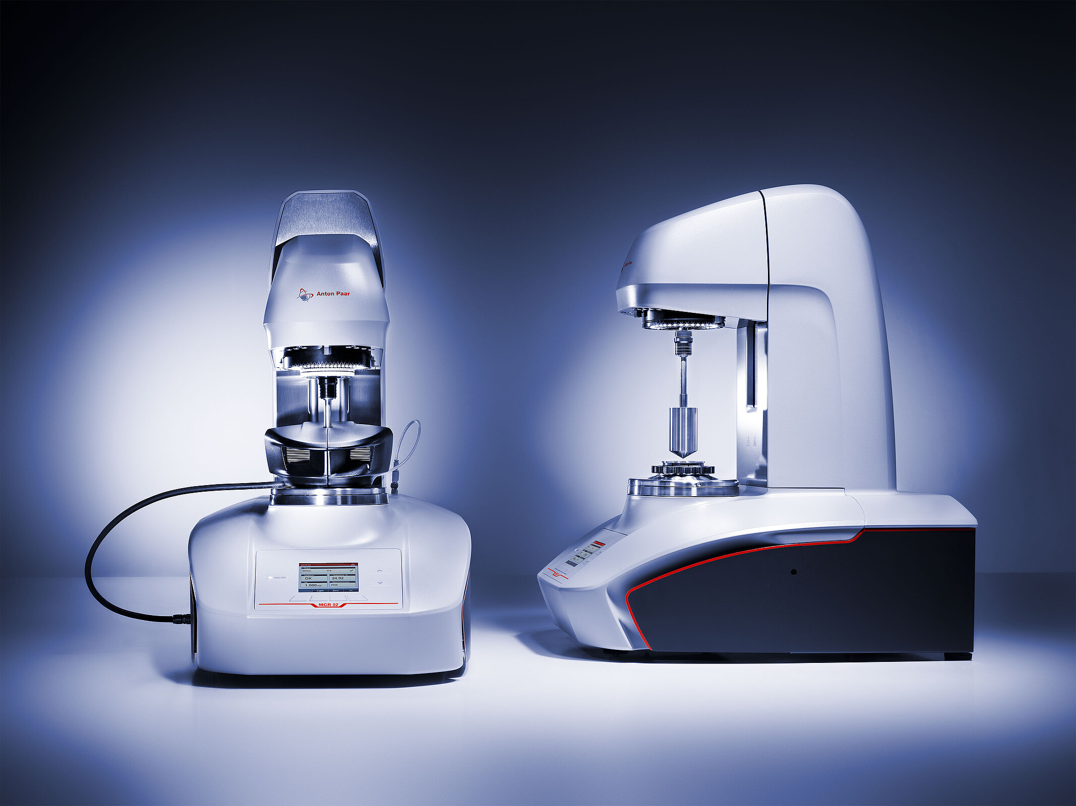 µÎ °¡ÁöÀÇ »õ·Î¿î ·¹¿À¹ÌÅÍ ÀÌ¿ë °¡´É: MCR 72¿¡´Â º¼ º£¾î¸µ ¸ðÅÍ(Ãæ°Ý¿¡ ¾ÈÁ¤ÀûÀÎ »ç¿ë¼º, ¾ÐÃà °ø±â ºÒÇÊ¿ä)°¡ ÀåÂøµÇ°í MCR 92¿¡´Â ¿¡¾î º£¾î¸µ ¸ðÅÍ(¹Î°¨ÇÑ ½Ã·á¿ëÀ¸·Î ¸Å¿ì Á¤È®ÇÔ)°¡ ÀåÂøµË´Ï´Ù. À̵Π·¹¿À¹ÌÅʹ ȸÀü ¹× Áøµ¿ ¸ðµå¿¡¼ ÃøÁ¤ÇÒ ¼ö ÀÖ½À´Ï´Ù. ·¹¿À¹ÌÅÍ ¸ðµ¨ÀÇ ¼±ÅÃÀº ÀÀ¿ë ºÐ¾ß¿¡ µû¶ó ´Þ¶óÁú ¼ö ÀÖ½À´Ï´Ù. ½Ã·áÀÇ º¯Çü ¹× À¯Ã¼ °Åµ¿À» Á¶»çÇÏ·Á¸é(´Ù¾çÇÑ ¿Âµµ¿¡¼µµ °¡´É) MCR 72¸¦ ±ÇÀåÇÕ´Ï´Ù. ½Ã·áÀÇ ±¸Á¶¸¦ °üÂûÇÏ·Á¸é MCR 92¸¦ ±ÇÀåÇÕ´Ï´Ù. µÎ Àåºñ ¸ðµÎ ÃøÁ¤ Çìµå¸¦ ÀÚµ¿À¸·Î µé¾î¿Ã·Á Á¤È®ÇÑ ÃøÁ¤ °£°ÝÀ» ¼³Á¤ÇÏ´Â ¸ðÅ͸¦ ÀåÂøÇϰí ÀÖ½À´Ï´Ù. ÀÌ ÃøÁ¤ °¸Àº 100% ÀçÇö °¡´ÉÇÕ´Ï´Ù. MCR72¿Í MCR 92 ¸ðµÎ ¿Âµµ ÀåÄ¡¸¦ ÀåÂøÇÏ¿© -50 ¡ÆC ~ +400 ¡ÆCÀÇ ¹üÀ§¸¦ ´Ù·ê ¼ö ÀÖ½À´Ï´Ù.